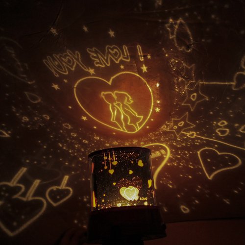 Fallegt ljós sem varpar hjörtum og stjörnum á vegginn.